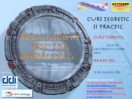 Cursul ”Radiologie dentara intraorala” organizat de A.O.S.R.F. ( Asociatia Odonto-Stomatologica Romano Franceza) in perioada 23 - 24 aprilie 2010 la Sibiu.